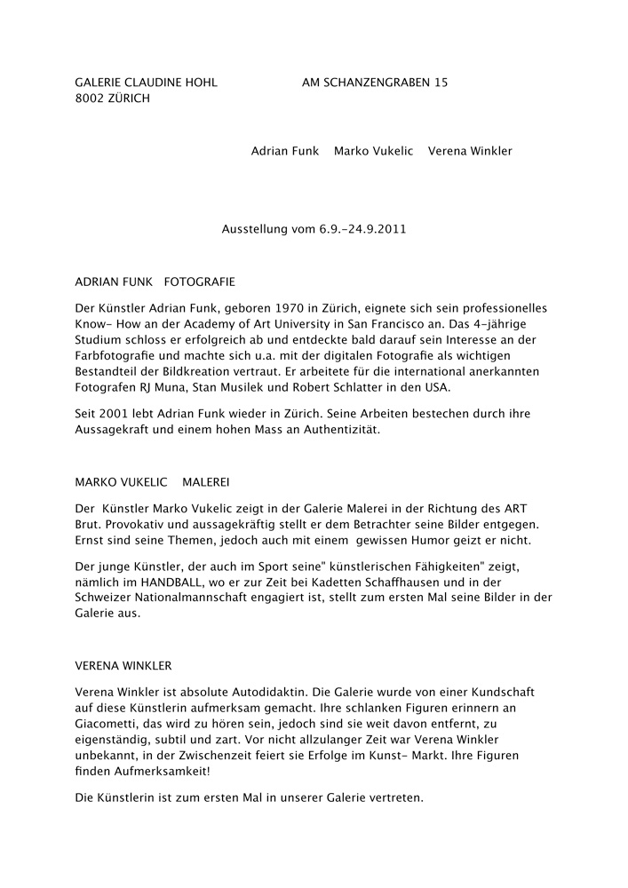 Galerie Claudine Hohl Zürich